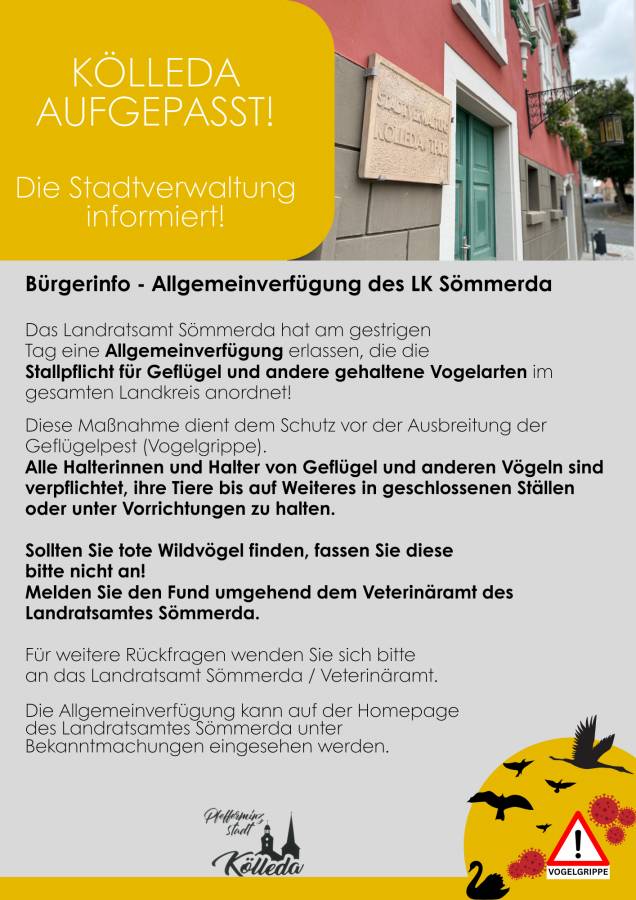 Allgemeinverfügung des LK Sömmerda - Stallpficht für Geflügel und andere gehaltene Vogelarten