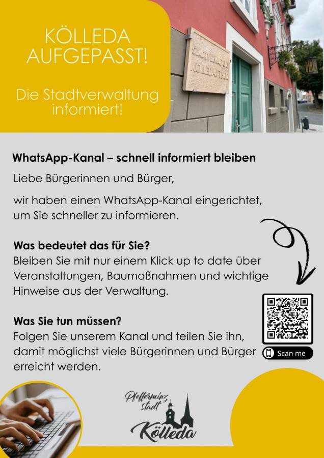 WhatsApp Kanal der Stadt Kölleda - schnell infomiert bleiben!